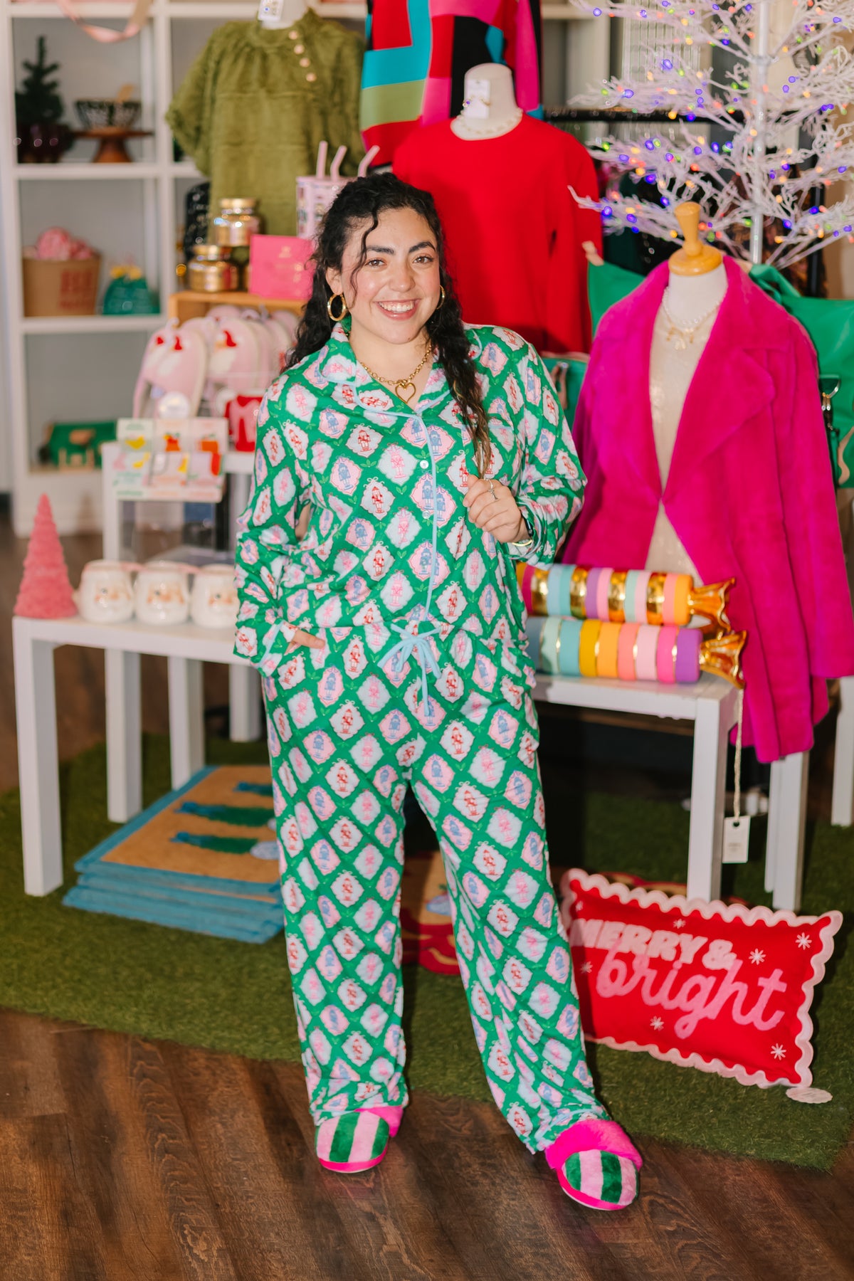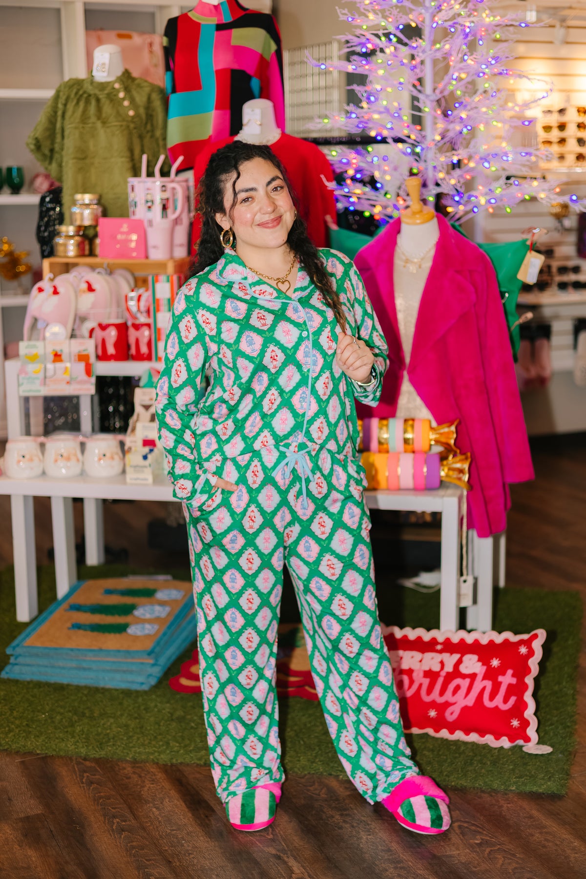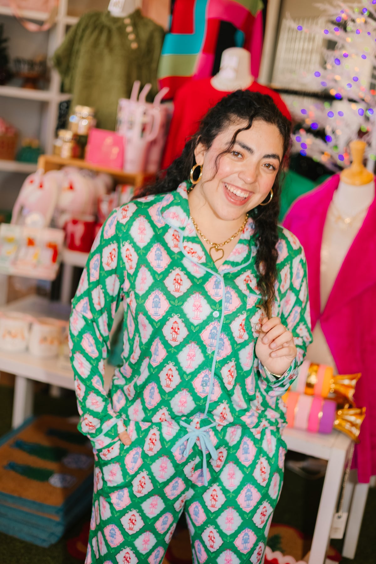 The Charlotte Christmas Cavalry Pajama Set brings festive charm to your holiday nights. Made from soft, breathable fabric and featuring a whimsical Christmas print, this matching set offers both comfort and style. With its classic button-front top and relaxed fit, it’s perfect for lounging, gifting, or celebrating cozy moments all season long.